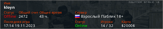 Играет на Counter Strike 1.6 сервере. Страна: РоссияПервый раз замечен 13:04 19.09.2020