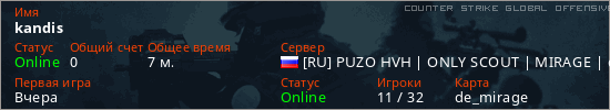 Играет на Counter Strike Global Offensive сервере. Страна: РоссияПервый раз замечен 12:38 22.03.2026