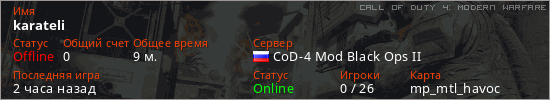 Играет на Call of Duty 4: Modern Warfare сервере. Страна: РоссияПервый раз замечен 18:57 19.12.2025