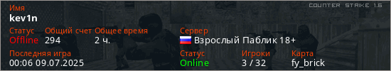 Играет на Counter Strike 1.6 сервере. Страна: РоссияПервый раз замечен 16:54 05.10.2023