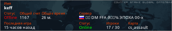 Играет на Counter Strike Global Offensive сервере. Страна: РоссияПервый раз замечен 16:06 06.03.2026