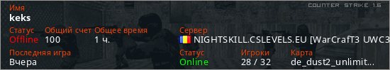 Последний раз был в сети Вчера Игрок с таким ником замечен на 32 серверах
