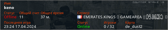 Играет на Counter Strike 1.6 сервере. Страна: ФранцияПервый раз замечен 21:50 13.03.2024