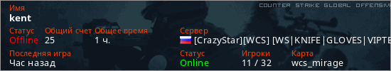 Играет на Counter Strike Global Offensive сервере. Страна: РоссияПервый раз замечен 13:18 08.03.2026
