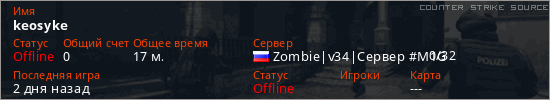 Играет на Counter Strike Source сервере. Страна: РоссияПервый раз замечен 23:26 14.02.2026