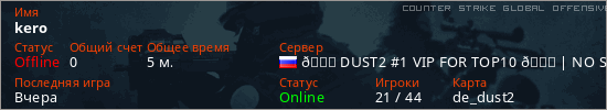 Играет на Counter Strike Global Offensive сервере. Страна: РоссияПервый раз замечен 14:41 21.03.2026
