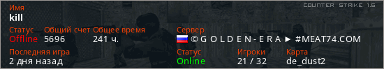 Последний раз был в сети 2 дня назад Игрок с таким ником замечен на 42 серверах