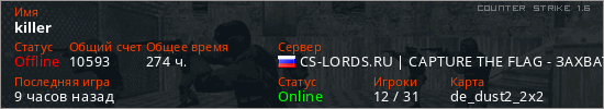 Играет на Counter Strike 1.6 сервере. Страна: РоссияПервый раз замечен 12:27 25.08.2020