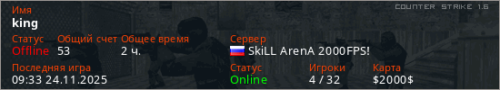 Последний раз был в сети 09:33 24.11.2025 Игрок с таким ником замечен на 51 сервере