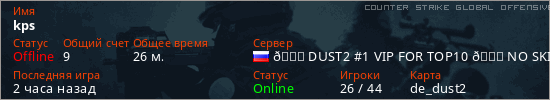 Играет на Counter Strike Global Offensive сервере. Страна: РоссияПервый раз замечен 09:57 10.03.2026