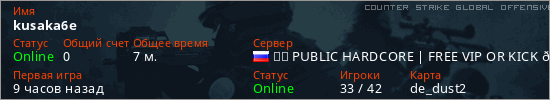 Играет на Counter Strike Global Offensive сервере. Страна: РоссияПервый раз замечен 05:23 08.02.2026