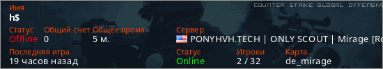 Играет на Counter Strike Global Offensive сервере. Страна: СШАПервый раз замечен 21:12 30.03.2026