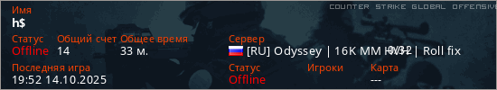 Играет на Counter Strike Global Offensive сервере. Страна: РоссияПервый раз замечен 17:49 25.04.2025