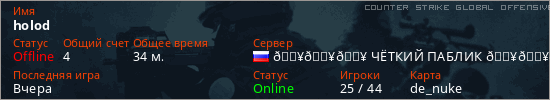 Играет на Counter Strike Global Offensive сервере. Страна: РоссияПервый раз замечен 15:21 15.04.2025