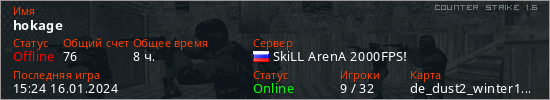 Последний раз был в сети 15:24 16.01.2024 Игрок с таким ником замечен на 17 серверах