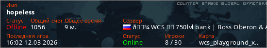 Играет на Counter Strike Global Offensive сервере. Страна: РоссияПервый раз замечен 22:30 11.03.2026