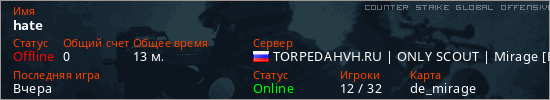 Последний раз был в сети Вчера Игрок с таким ником замечен на 22 серверах