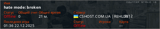 Играет на Counter Strike 1.6 сервере. Страна: УкраинаПервый раз замечен 23:48 18.12.2025