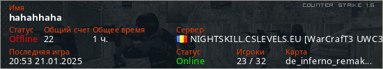 Играет на Counter Strike 1.6 сервере. Страна: РумынияПервый раз замечен 21:00 13.01.2025