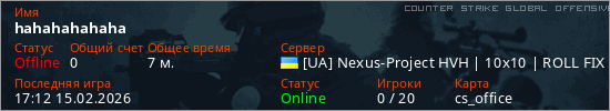 Играет на Counter Strike Global Offensive сервере. Страна: УкраинаПервый раз замечен 15:46 14.02.2026