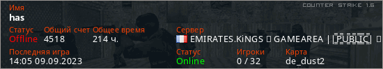 Последний раз был в сети 14:05 09.09.2023 Игрок с таким ником замечен на 13 серверах