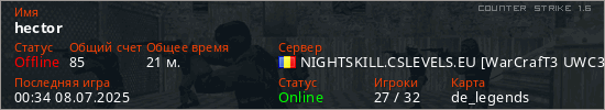 Последний раз был в сети 00:34 08.07.2025 Игрок с таким ником замечен на 18 серверах