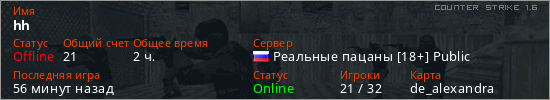 Последний раз был в сети 21 час назад Игрок с таким ником замечен на 42 серверах