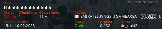 Играет на Counter Strike 1.6 сервере. Страна: ФранцияПервый раз замечен 15:06 10.02.2023