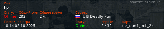 Играет на Counter Strike 1.6 сервере. Страна: РоссияПервый раз замечен 16:43 21.07.2022