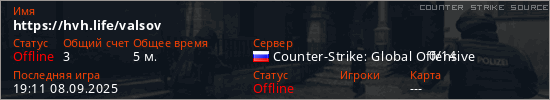 Играет на Counter Strike Source сервере. Страна: РоссияПервый раз замечен 17:58 08.09.2025