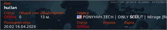 Играет на Counter Strike Global Offensive сервере. Страна: СШАПервый раз замечен 15:37 02.04.2026