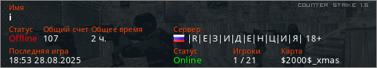 Последний раз был в сети 18:53 28.08.2025 Игрок с таким ником замечен на 44 серверах