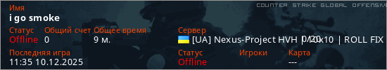 Играет на Counter Strike Global Offensive сервере. Страна: УкраинаПервый раз замечен 15:11 08.12.2025