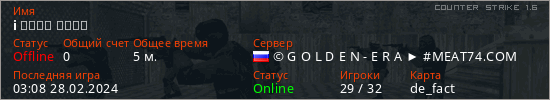 Играет на Counter Strike 1.6 сервере. Страна: РоссияПервый раз замечен 03:04 28.02.2024