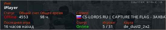 Последний раз был в сети 6 часов назад Игрок с таким ником замечен на 24 серверах