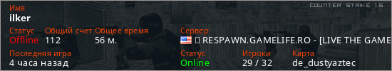 Играет на Counter Strike 1.6 сервере. Страна: СШАПервый раз замечен 18:06 08.02.2026