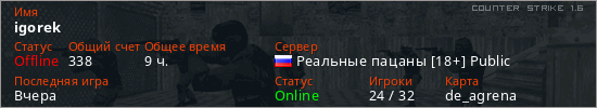 Последний раз был в сети Вчера Игрок с таким ником замечен на 18 серверах