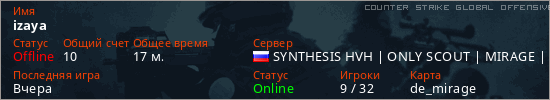 Играет на Counter Strike Global Offensive сервере. Страна: РоссияПервый раз замечен 05:24 28.01.2026