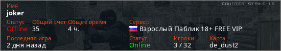 Последний раз был в сети 2 дня назад Игрок с таким ником замечен на 48 серверах
