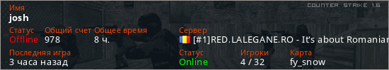 Играет на Counter Strike 1.6 сервере. Страна: РумынияПервый раз замечен 18:52 25.01.2025