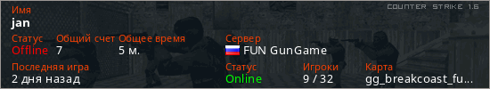 Последний раз был в сети 2 дня назад Игрок с таким ником замечен на 32 серверах