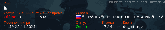 Играет на Counter Strike Global Offensive сервере. Страна: РоссияПервый раз замечен 11:10 25.11.2025