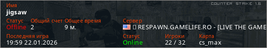 Играет на Counter Strike 1.6 сервере. Страна: СШАПервый раз замечен 02:54 21.01.2026