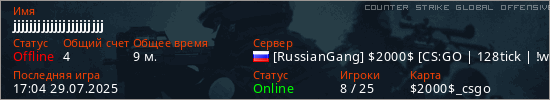 Играет на Counter Strike Global Offensive сервере. Страна: РоссияПервый раз замечен 12:32 29.07.2025