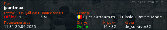 Играет на Counter Strike 1.6 сервере. Страна: РумынияПервый раз замечен 11:29 29.06.2025