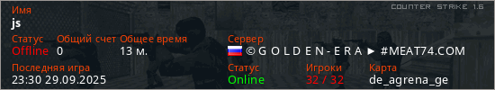 Играет на Counter Strike 1.6 сервере. Страна: РоссияПервый раз замечен 07:34 01.06.2023