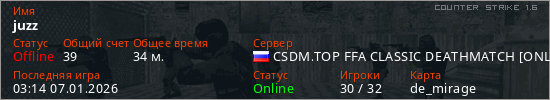 Играет на Counter Strike 1.6 сервере. Страна: РоссияПервый раз замечен 14:49 29.04.2025