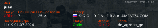 Играет на Counter Strike 1.6 сервере. Страна: РоссияПервый раз замечен 07:32 15.03.2024
