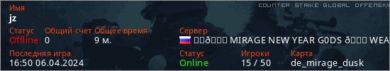 Играет на Counter Strike Global Offensive сервере. Страна: РоссияПервый раз замечен 00:14 28.03.2024
