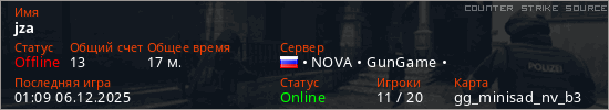 Играет на Counter Strike Source сервере. Страна: РоссияПервый раз замечен 00:15 17.05.2025